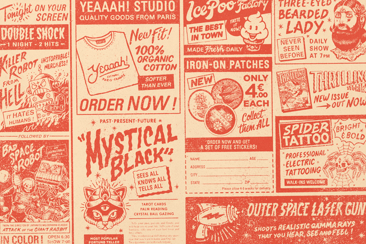 Shot by Berzeker and edited by Yeaaah! Studio, the lookbook is featured in their latest publication Quality Goods, a beautiful 68 page art book which complies of all of the designs created for the brand during the past three years, plus several collaborations. The limited 300 copy self released book has been risograph printed in 3 colours by Presto Éditions to specifically reimagine the vintage stylings of historic magazines and comics Stephane admits to adore. Don’t miss out, get your copy here.