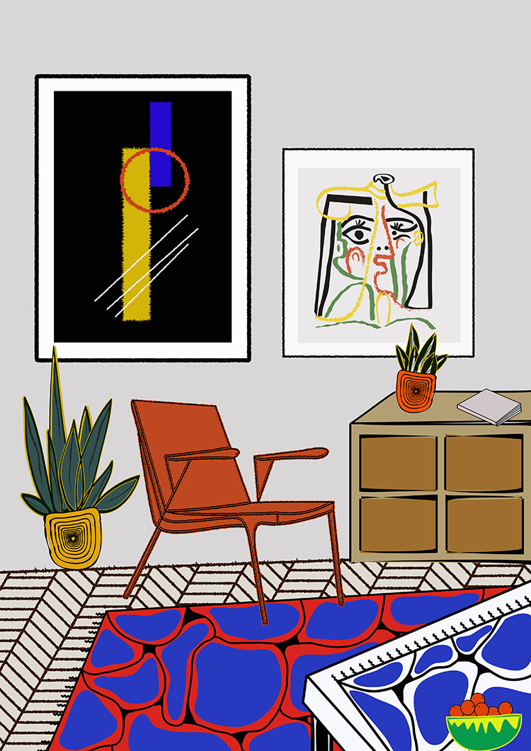 A recent commission of this designers work includes Say Hi To Magazine. A great publication that showcases designers; especially furniture and interior design. Lottie was commissioned to collaborate with a Parisian studio called POOL and interpret their furniture into her interior illustrations.