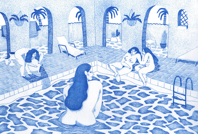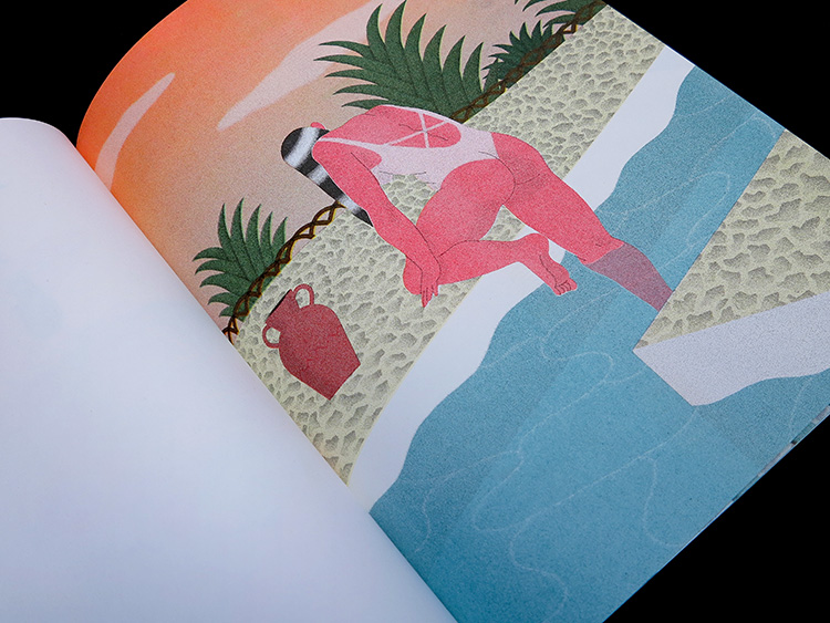 Earlier this year, Wietzel’s work featured in the fanzine Gribouilli and she created her first ever risograph-printed book, Solarium. The book, bound in cloth, is limited to 100 copies and has been published by Parisian risograph printers Presto Éditions. Her striking portrayal of bold female figures leads to feminist undertones in much of her work, something that is more than welcome at a time when we are bombarded with the notion of the ‘ideal’ body type by the mass media.