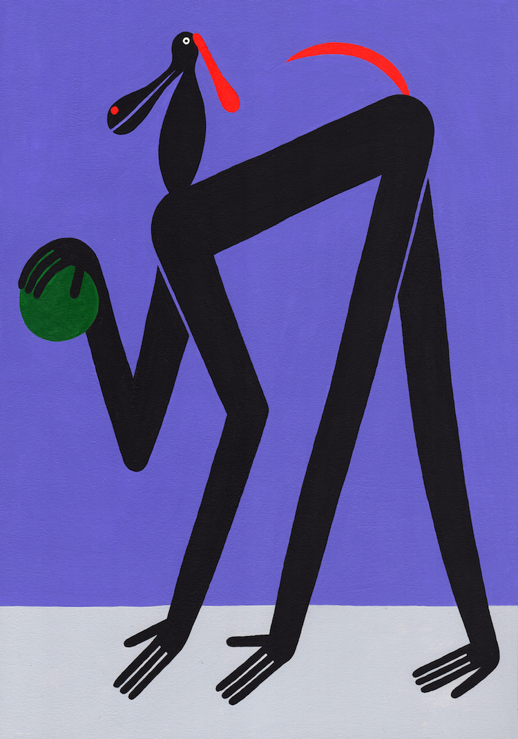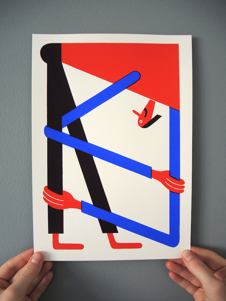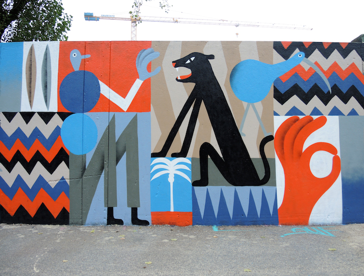 Zebu use bright, bold colours so that each image packs a huge visual punch. Their use of vibrant colours and abstracted figures lead to striking pieces of art in surprising places. You could be walking through the streets of Berlin, or using the toilets in a club when you come across Zebu’s work. Being both surreal and abstract, it takes a minute to work out what exactly it is that you are looking at when confronted with one of Zebu’s images. Their fun designs have the ability to bring humour and playfulness to our otherwise mundane daily lives.