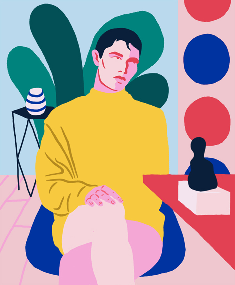 After finishing a Graphic Design course at Leeds College of Art, Joel Burden realised that pure design didn’t suit him and he craved a greater degree of personal expression. After taking some time out to draw and experiment Joel managed to win a pencil at the D&AD New Blood Awards 2016 where he had started to build towards his current aesthetic. Joel said “It was difficult at times, having to re-wire my brain away from design, but revitalising. I have also tried to let graphic elements, such as bold colours and shapes, feed into my practice. It’s an ever-evolving process and I’m still very much at the start of it.”