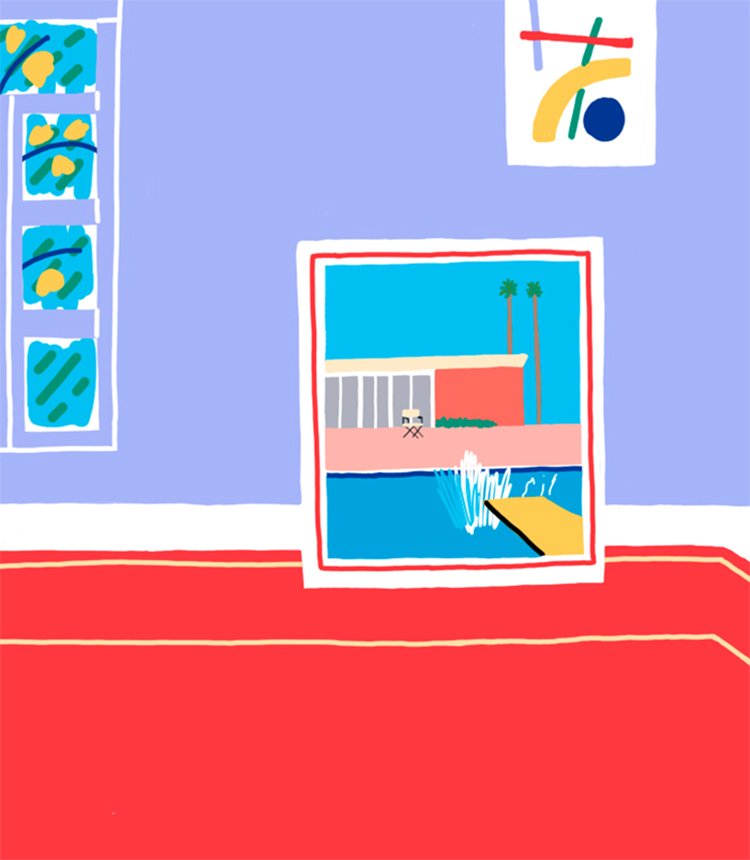 ‘Room with a Hockney’ and ‘Remix of an Alice Neel’ are ways in which Joel takes what inspires him and uses them as studies to experiment with how he approaches things stylistically. Joel’s clever use of colour and contrast within his work allows him to create depth to each piece, when using flat digital colour would usually make this trickier. Finding the balance always ends up being a massive part in each of Joel’s pieces, one which can make or break it.