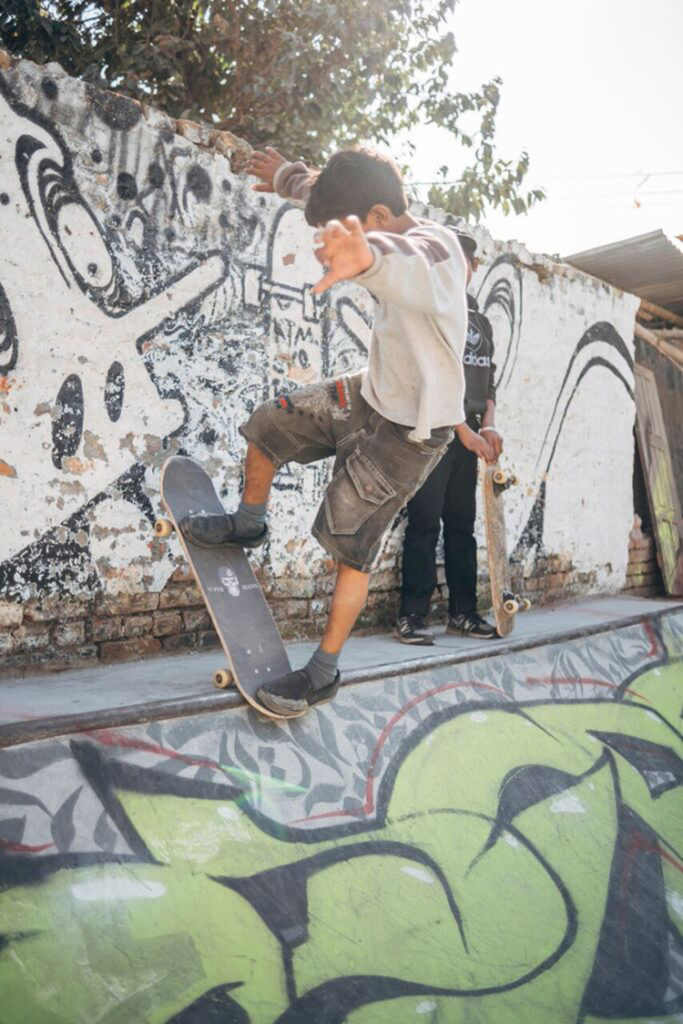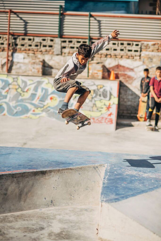 In 2017, their organisation was the driving force behind the construction of Nepal’s first purpose-built concrete skate park. Conceived, designed and erected by a team of 50 skateboarders from around the world, the park has already had a huge effect on the local community. A focal point for local kids of all abilities, the mix of beginner’s obstacles and advanced quarter pipes and handrails is introducing skateboarding to a whole new generation of Nepalese kids.