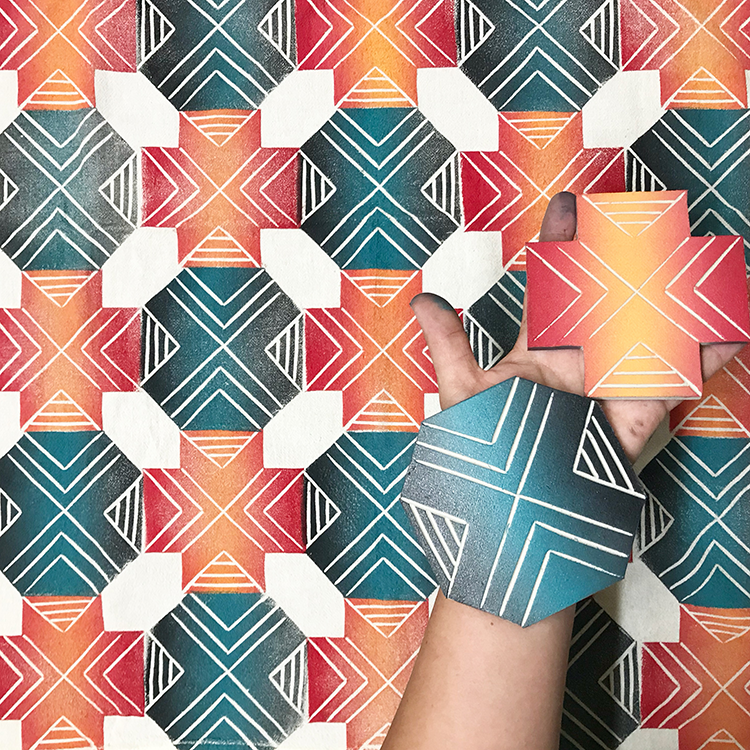 Another recent People of Print Member to join us is SRM Prints run by Rockford-based Printmaker Sareed. This talented artist loves to create negative space and repeat pattern prints and over the last couple of years has been experimenting with hand-carved linocut blocks to explore these areas. Since a young age Sareed has been passionate about colour, pattern and creating things — printmaking brings her complete joy and tranquillity.
