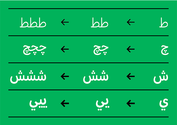 After finding out a little more about what inspired the face design, it was the calligraphic Naskh style with a reference to the geometry and letter shapes of Aperçu Latin that was the initial starting point. According to the Colophon team, this style has been used over the centuries for long texts due to its optimised organic letter shapes. However, Aperçu Arabic is a less organic and more geometric interpretation of the Nashk style; a modern Arabic sans-serif based on a calligraphic style.