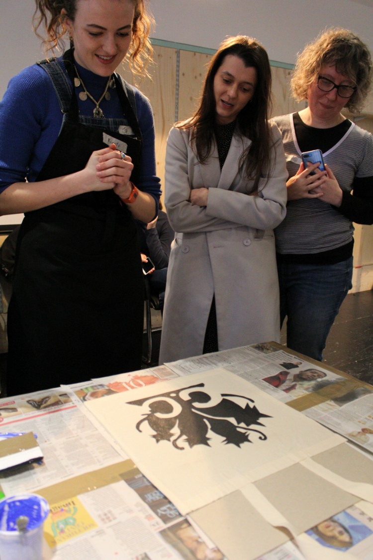 Zé’s students loved the opportunity to get hands-on with the screen printing technique. Each participant created a stencil from their own hand sketched design, and then learnt how to correctly pull a print with squeegee and screen under the expert guidance of Zé.